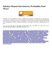 Download solution manual introductory probability paul meyer Epub online is a convenient and frugal way to read solution manual introductory probability paul meyer you love right from the comfort of your own home. Yes, there sites where you can get Epub "for free" but the ones listed below are clean from viruses and completely legal to use.